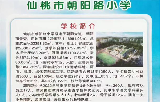 百年大计教育为本子女学校始终是家长们最关心的问题这不官宣,好消息来了!请速度查收!朝阳路再添一所优质学校仙桃市朝阳路小学已于8月10日正式启动线下线上招生工作!新增学位260个...[阅读全文]