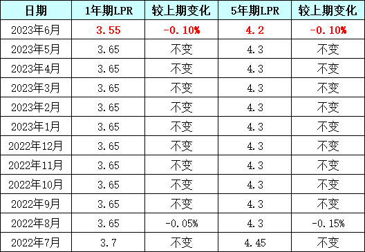今天早上,中国人民银行公布,2023年6月20日贷款市场报价利率(LPR)为:1年期LPR为3.55%,5年期以上LPR为4.2%。以上LPR在下一次发布LPR之前有效。
