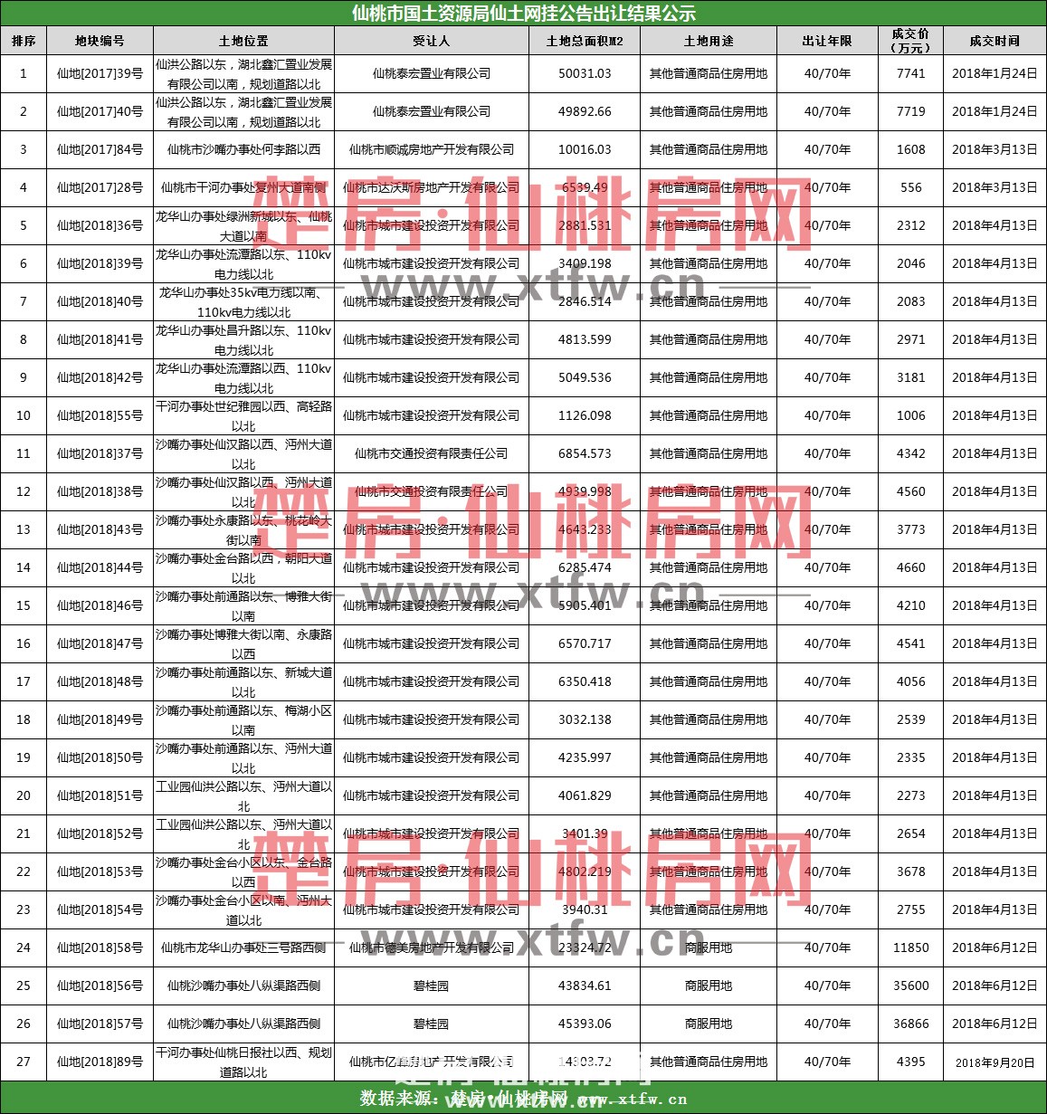 ①2018年仙桃城区共交易27宗 南城新区占七成以上