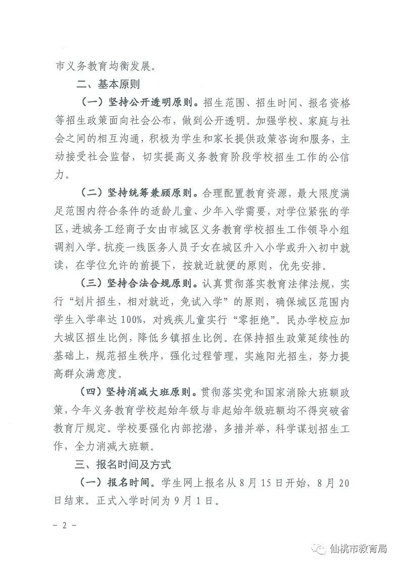 (二)报名方式。家长向辖区学校申请报名,须提交真实有效的户口本、房产证、营业执照、劳务合同、养老保险凭证等相关证件的原件。辖区学校将符合入学条件的新生报名证件,统一上传到仙桃教育招生网。市城区义务教育学校招生领导小组协调相关部门,进行网上复审,向审核合格的学生发放入学通知书。