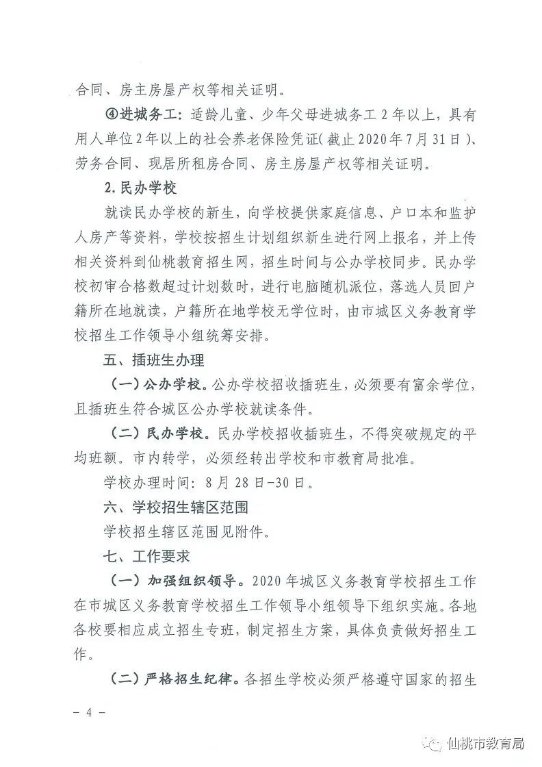 ④进城务工:适龄儿童、少年父母进城务工2年以上,具有用人单位2年以上的社会养老保险凭证(截止2020年7月31日)劳务合同、现居所租房合同、房主房屋产权等相关证明。