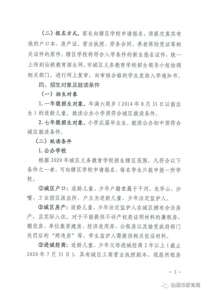 2.七年级招生对象。小学应届毕业生。就读公办初中须符合城区就读条件。
