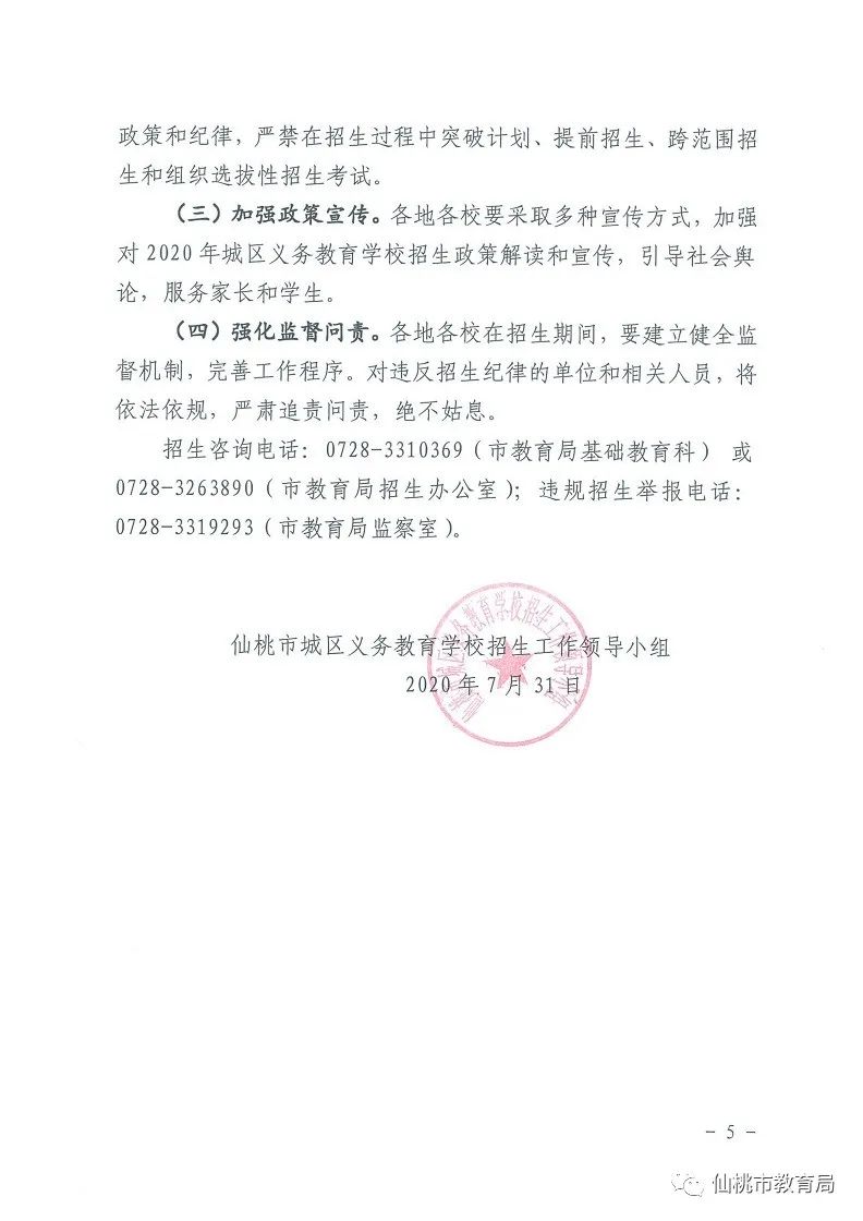违规招生举报电话:0728-3319293(市教育局监察室)