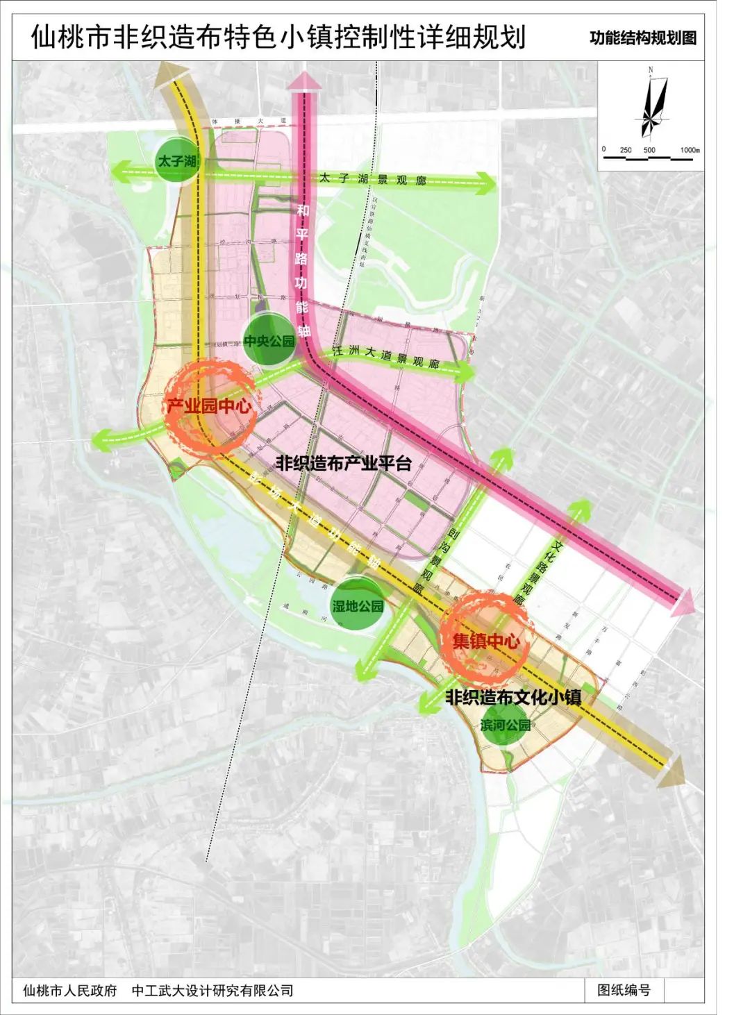 非织造布文化小镇以彭场老镇区为依托,主要功能为产业平台的支撑保障、集镇生活及服务的集聚区、非织造文化的风尚展示区、田园水乡特色的生态区。