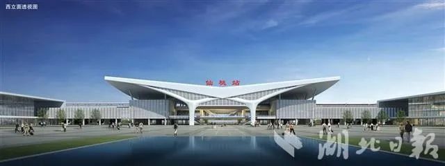 在仙桃站施工现场,一片泥泞的土地上,一座造型像大鹏展翅的站房映入眼帘。站房内,机器轰鸣、焊花四射,工人们正在进行吊顶和装修。中铁第四勘察设计院仙桃支线项目部副总经理易有淼介绍,仙桃站站房总建筑面积1.2万平方米,用现代建筑语言描摹振翅高飞的大鹏形象,象征仙桃经济社会蓬勃发展的态势。