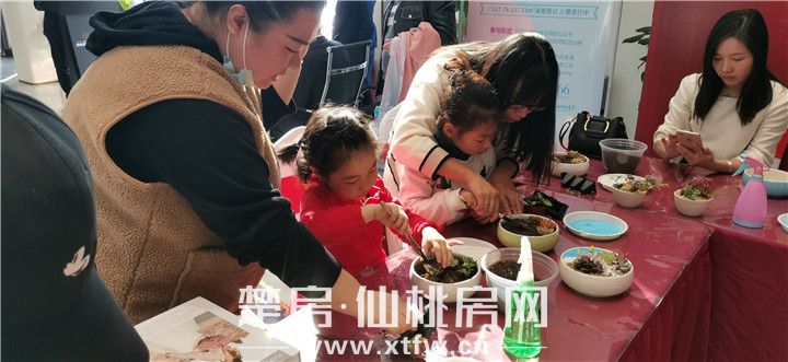 一进入活动现场,映入眼帘的是满桌的多肉植物,还有小花盆和装饰道具。主持人先为大家介绍多肉植物易于打理、生命力顽强的特性,然后讲解移栽组装的方法,在场的大朋友小朋友们都跃跃欲试。
