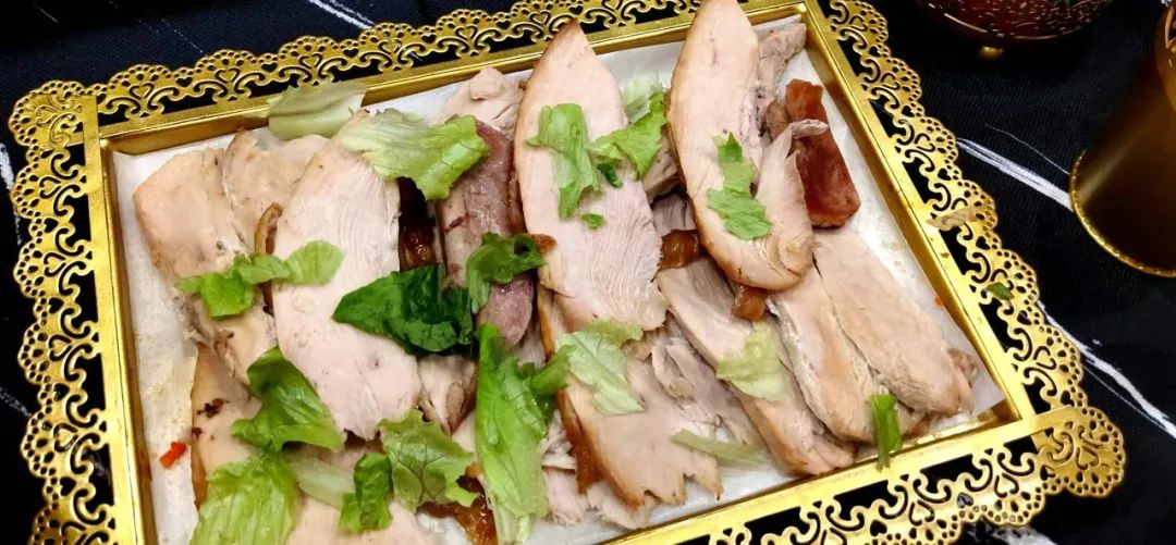 工作人员片好烤火鸡,