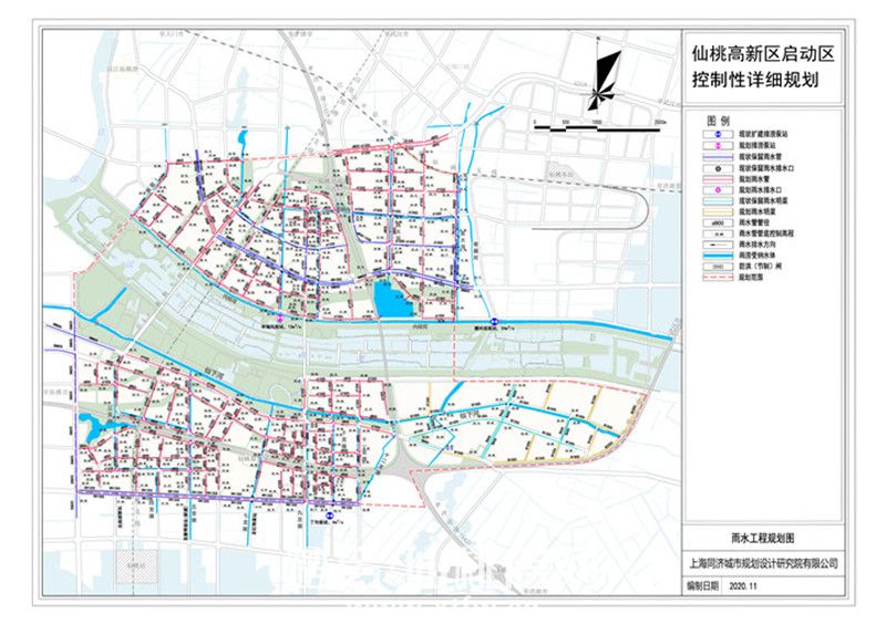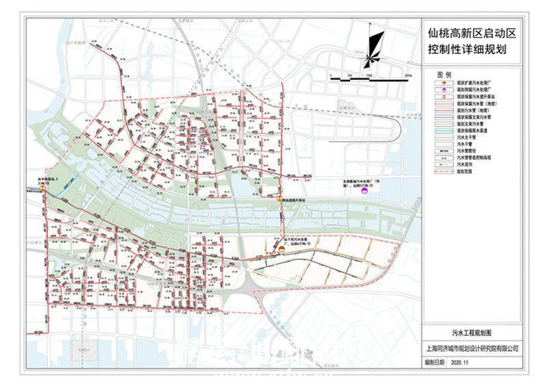 排水体制采用雨污分流制。启动区划分为四个污水排水分区。预测启动区污水产生量为4.3万/日,污水集中处理率达到100%。下一步扩建仙下河污水处理厂至6万m³/d。并预留1座东城污水处理厂(5万吨/日)。雨水方面启动区划分四个雨水分区,扩建1座、新建2座排涝泵站。