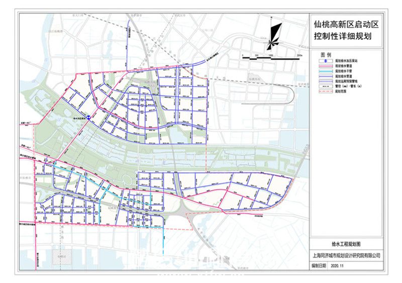 启动区最高日用水量约为7万m³/d。考虑区域整体发展的用水需求,建议在仙桃港以北新建1座水厂(建议规模20万吨/日),同现有水厂共同为高新区、长埫口镇、高铁小镇等片区供水。保留现状供水管道,北片区主干管沿沪聂线、迎宾大道、东城大道敷设,管径DN400-DN600;南片区主干管沿仙西公路、纱帽路、新城大道敷设,管径DN400-DN600。