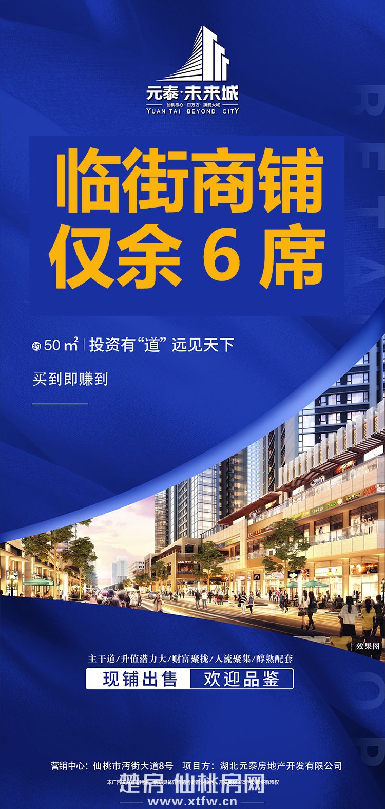元泰未来城项目处于于前通路与沔街大道交汇处,前通路双向六车道,北接客运总站,大新路商圈,南接新市政务中芯,第一人民医院;玉沙大道,东接武商MALL城,西至汉宜高速入口;交通优势突显展现双城魅力,优越地段,项目将享受两条主干道汇集的人气,商业价值不言而喻。