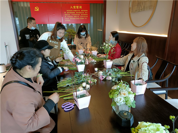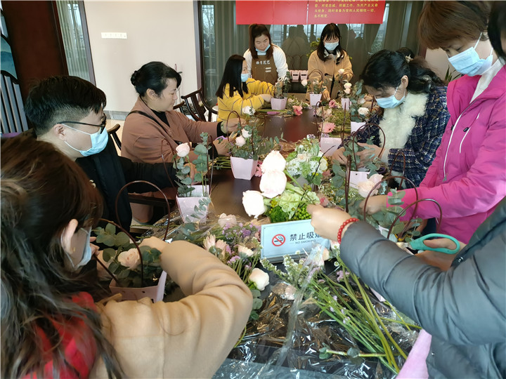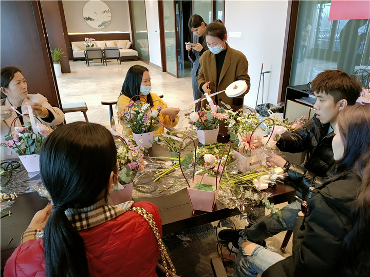 来访客户们与花艺老师一起