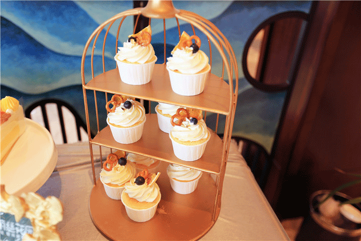 有精美的糕点、水果以及奶茶