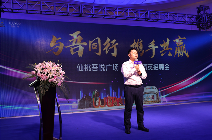 招聘会于当日上午9点正式拉开序幕,主持人率先上台对整个招聘活动做了详细介绍,并通过现场播放的新城控股集团企业VCR,让在座来宾及应聘者对新城有了更深的了解。首先,由新城控股仙桃吾悦广场副总经理肖军华先生为本次慕名而来的地产精英致以最诚挚的感谢,并表示新城控股很荣幸加入到仙桃城市建设的盛举中来。随后,由副总经理杨宗欣先生向大家介绍新城控股集团的发展历程及仙桃吾悦广场的整体情况,并期望以同频仙桃的巨大发展能量,执领业内精英俊杰共赴星途!