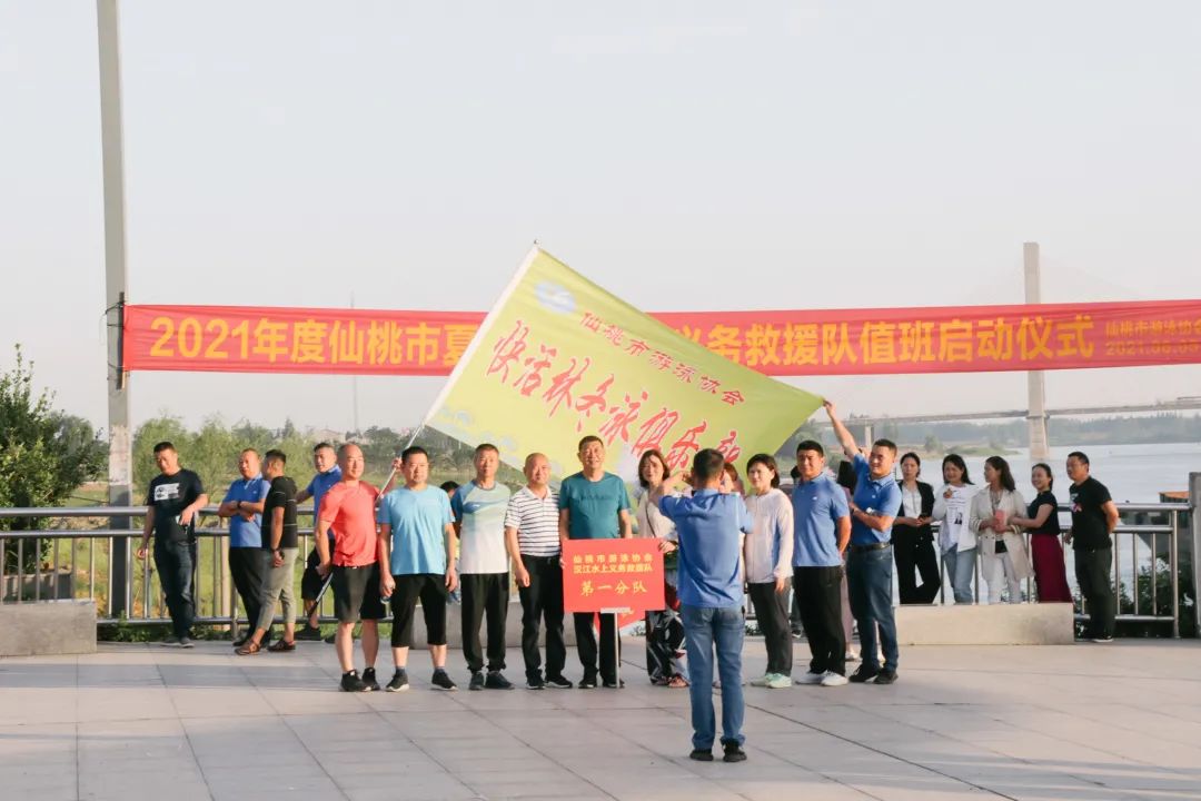 在“2021年度仙桃市夏季汉江水上义务救援队值班启动仪式”上,汉江水上义务救援队成员们进行宣誓。汉江水上义务救援队的成员们每年义无反顾救溺水人员,挽回多个家庭幸福,类似的每一件事情都深深的感动着我们,感动着仙桃。