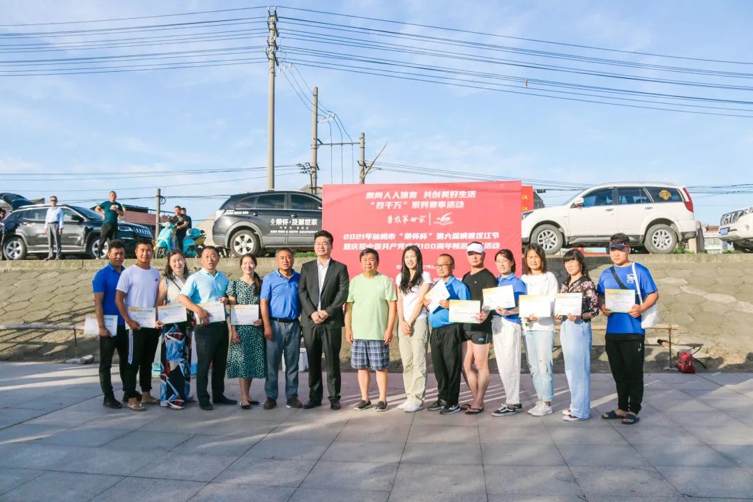 “仙桃市‘荣怀杯’第六届横渡汉江节”获奖选手们颁奖合影