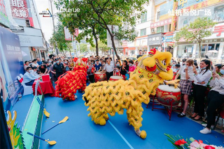 激情澎湃的致辞后,精彩的祥狮献瑞环节,将本次盛典推向高潮。领导们纷纷执笔上前,为舞狮点睛。10点18分,仙桃吾悦广场城市展厅揭开了神秘面纱,宣告仙桃至此进入“吾悦时代”。等待已久的宾客蜂拥而入,迫不及待一睹城市展厅芳容。