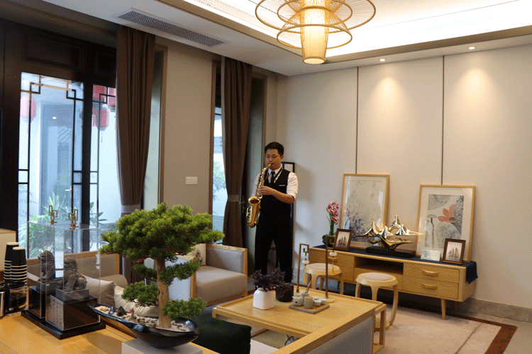 感受完西式的美食风情后,跟随者置业顾问的脚步来到了中式的样板间,还未进入就有一阵刚烤好的点心香味扑鼻而来伴随着悠扬的古筝演奏声声入耳~金华陈年火腿、20年以上陈酿精品花雕、现泡白毫银针一一浮现在眼前。