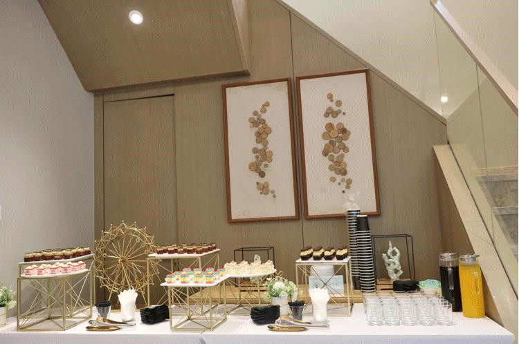 当视线往右边看的时候,楼梯的旁边还准备了各式各样西式的甜品供来往的嘉宾们品尝。