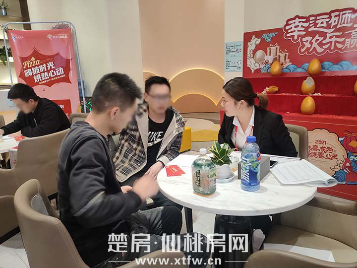 置房顾问对着客户细细讲解、耐心的答疑解惑