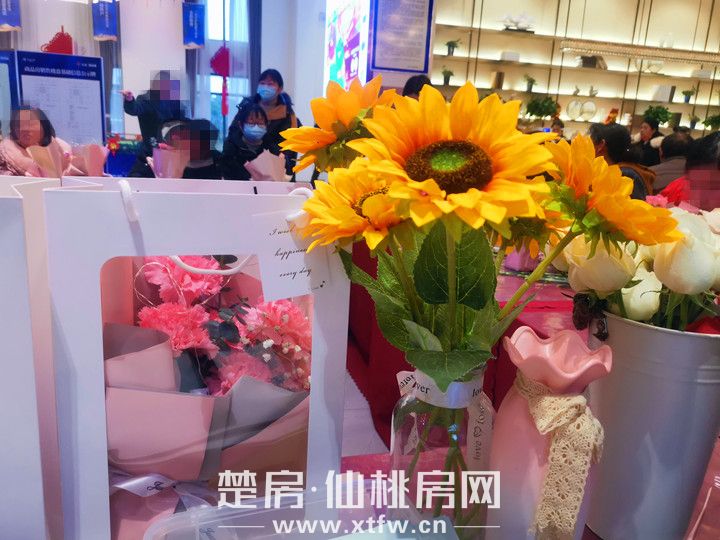 到访的业主家人们在花艺老师的指导下,