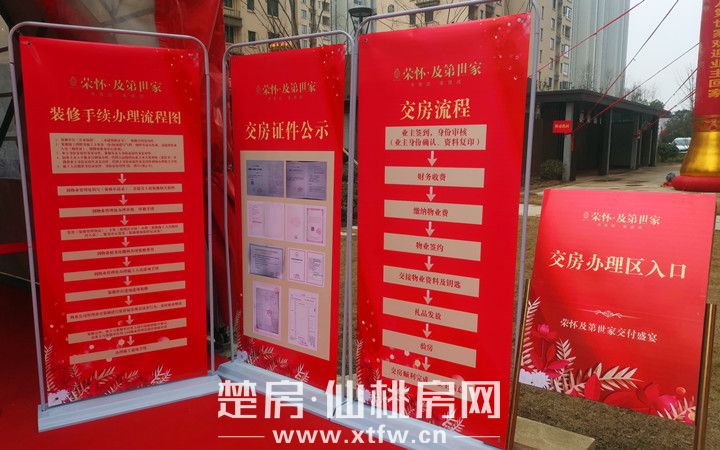 交房当天,现场被布置的喜气洋洋,荣怀·及第世家各部门分工明确,默契配合,秩序井然,工作人员全心投入,热情周到,耐心解答业主各种疑问。