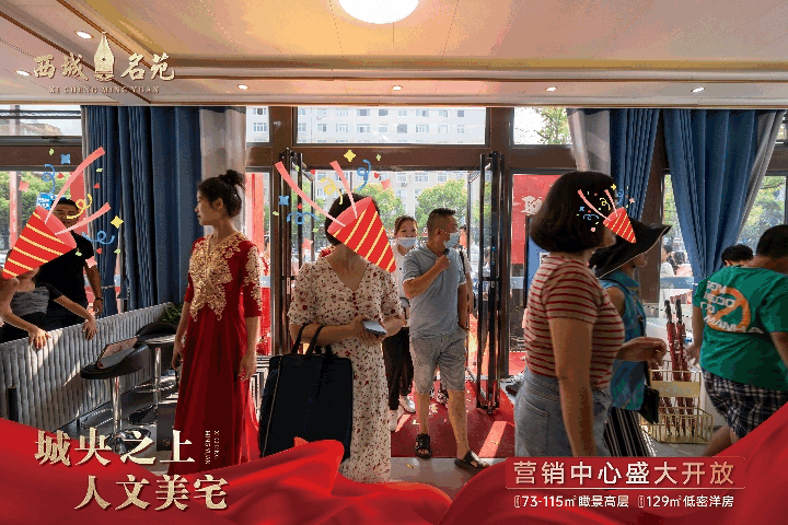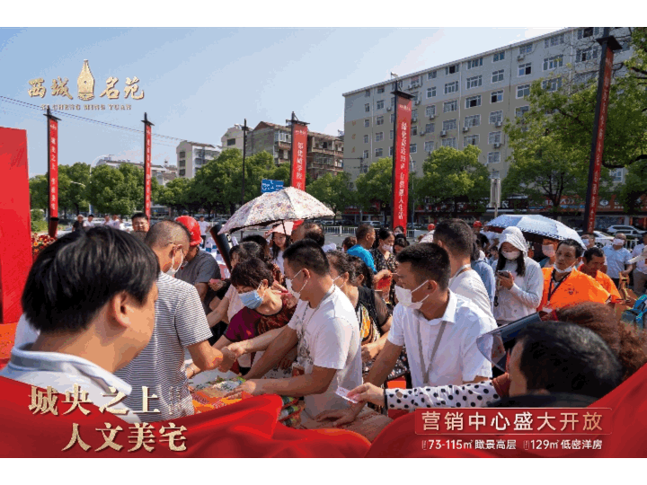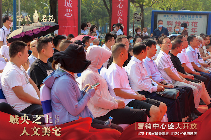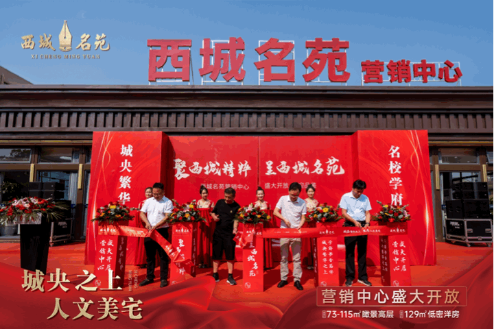 随后,开放仪式迎来当天的重头戏,参加活动的各位领导,共同为西城名苑营销中心开放活动剪彩。寓意开启仙桃人居的全新篇章。礼炮齐鸣,金带飞舞,将全场气氛推至高潮。剪彩结束,伴随着悠扬的音乐,现场嘉宾跟随领导一同步入营销中心,参观这座引领仙桃人居的新中式城央住宅。