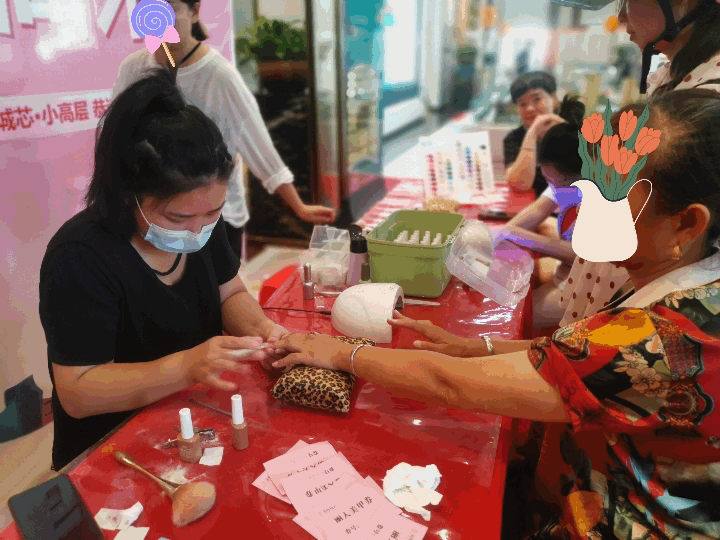 琳琅满目的指甲油修剪、打磨、抛光等工具摆满了桌子