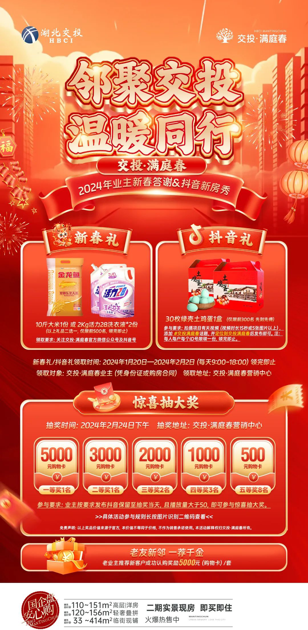 免责声明:以上奖品价值来源于官方,本价值不等同于价格,不作为销售承诺使用。逾期将视为自动放弃领奖资格,本活动解释权归交投·满庭春所有。