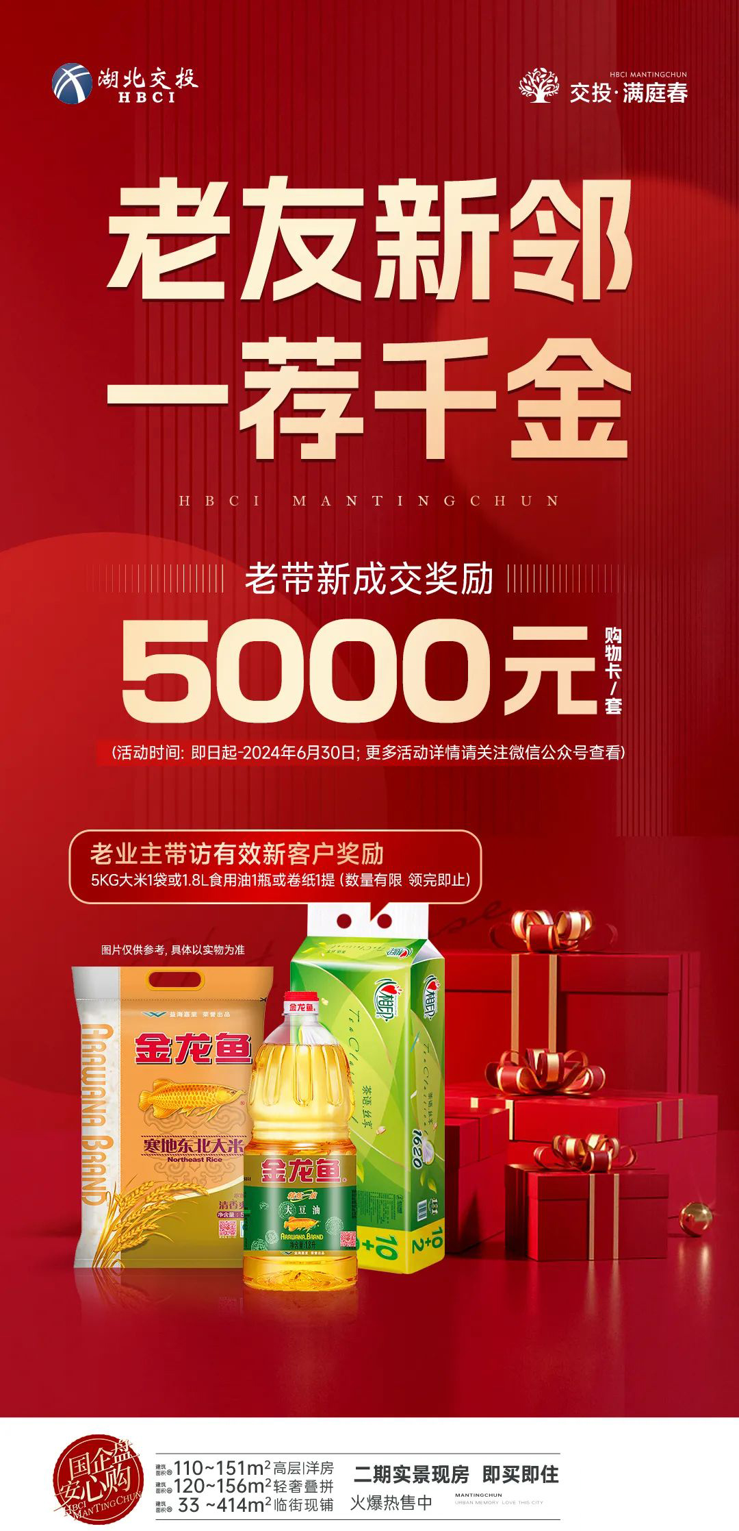 老业主推荐新客户成功报备并成交后,奖励5000元购物卡/套!