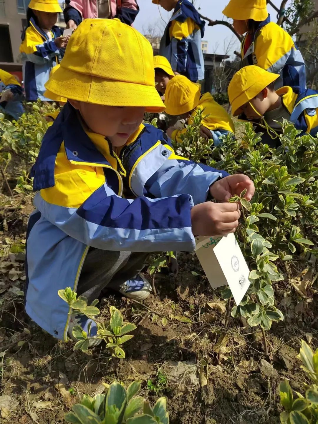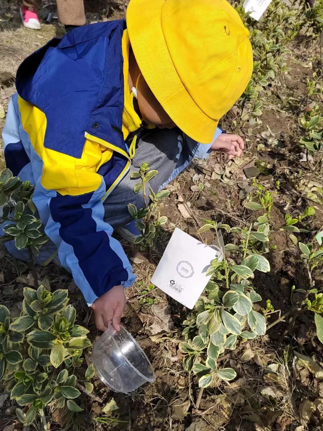 老师给每个小朋友派发种子,孩子们手拿小铲,化身种植达人,用稚嫩的小手挖洞、安置树苗、平土、洒水、挂牌……所有美好在这一刻萌芽!期待小树苗和孩子一起茁壮成长!