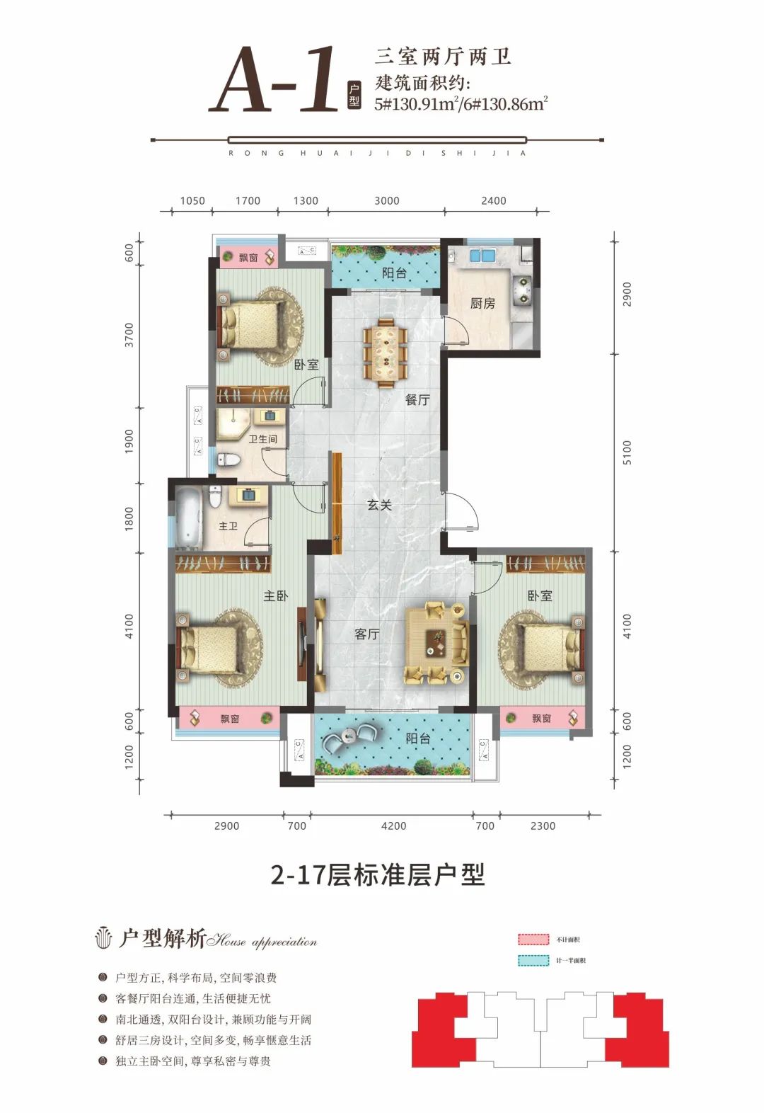 荣怀·及第世家秉承着美好人居产品观念,全面升级户型产品,匠筑建筑面积约108~130㎡全新户型,方正布局,动线合理,全明空间,瞰景大阳台等,打造舒适三居的产品,营造更美好的生活方式。