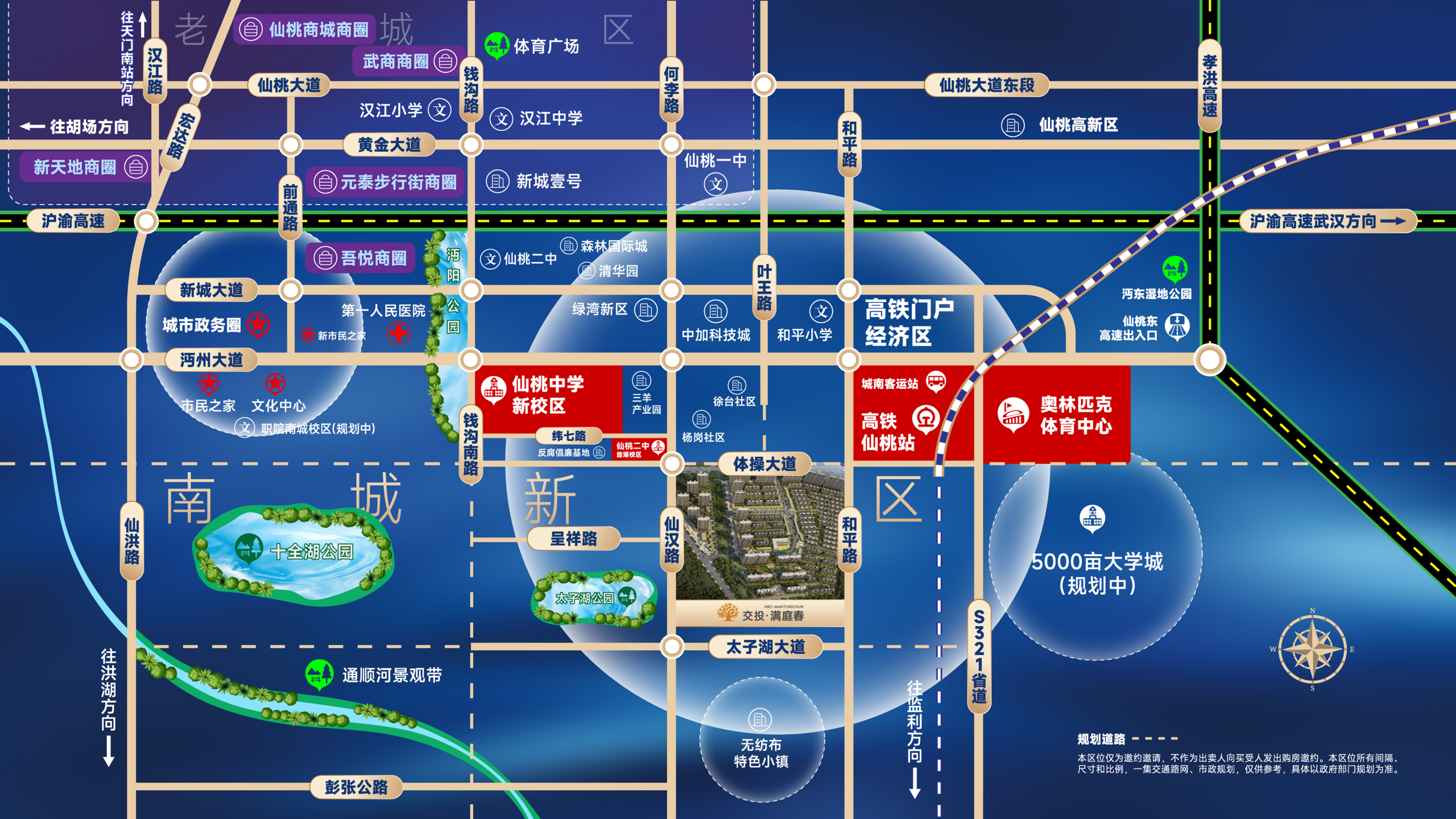 同时,社区内配建仙桃第二实验幼儿园-交投·满庭春分园,1.2公里毗邻仙桃中学新校区,从幼儿园到高中教育环伺,轻松解决家长接送难题。