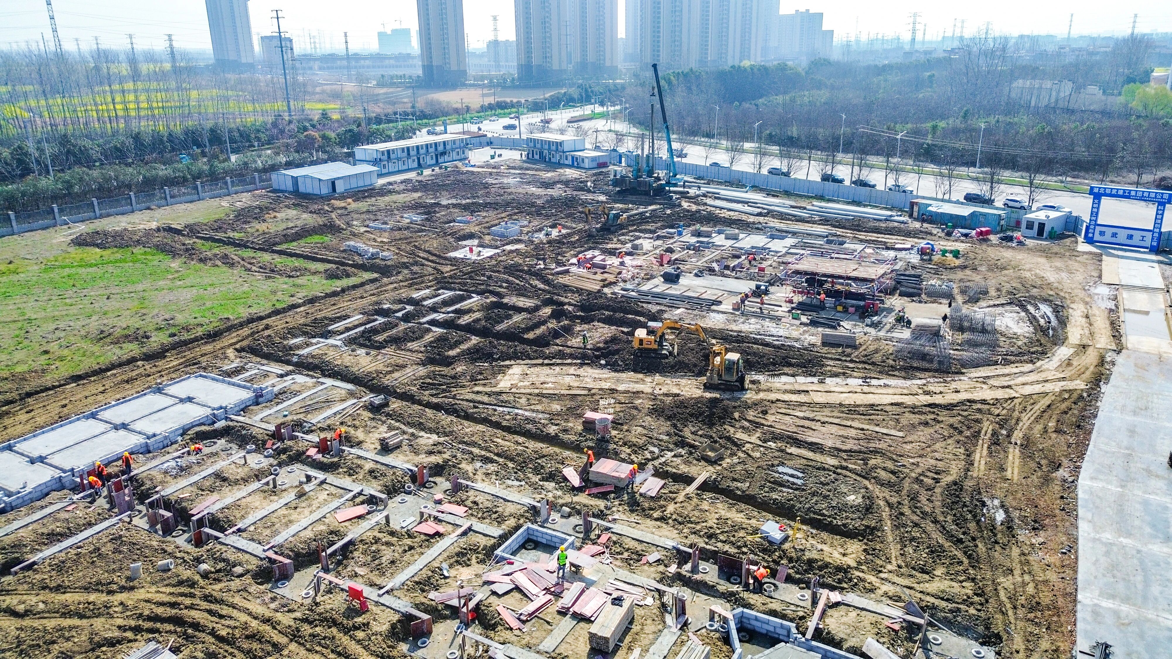 仙桃市第二中学曲湖校区桩基完工,基础结构正在施工!