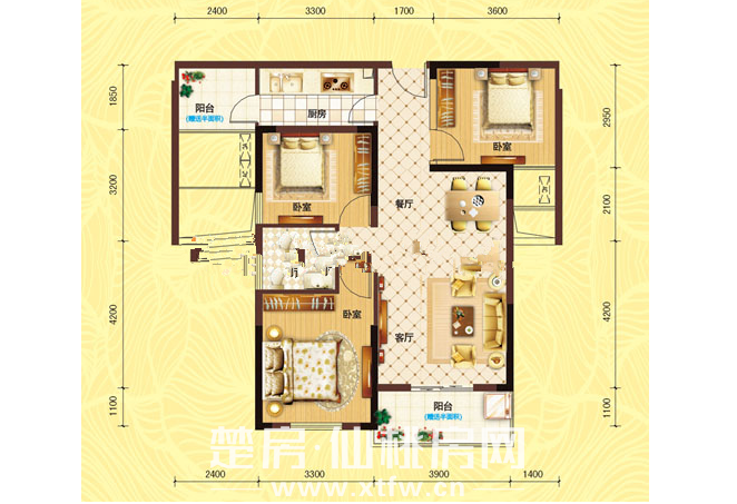 房屋户型:3室2厅97m²