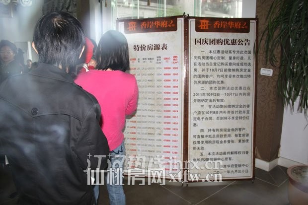 【团购优惠】团购优惠单价减100元/㎡,一次性97、按揭98折团购三套以上(含3套);(本优惠面向仙桃房网网友国庆期间有效2011-10-2~2011-10-7)