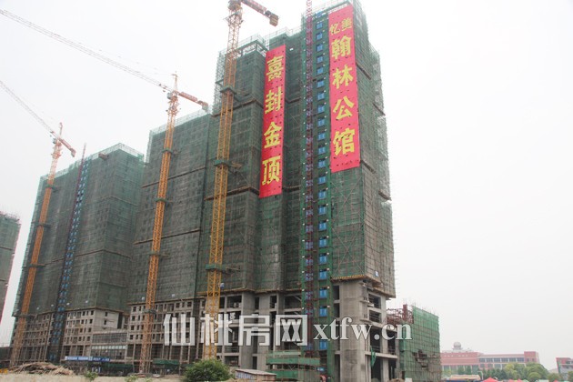 翰林公馆,城东纵向线与城南黄金大道横向交汇处,仙桃一中对面,1# 2# 3#楼已于4月9日喜封金顶,目前2# 3#楼室内隔墙已完工,4#楼在在5月上旬也即将封顶,商铺将在7月左右正式对外。二期工程,5# 6# 7#楼将在6月份开始动工。