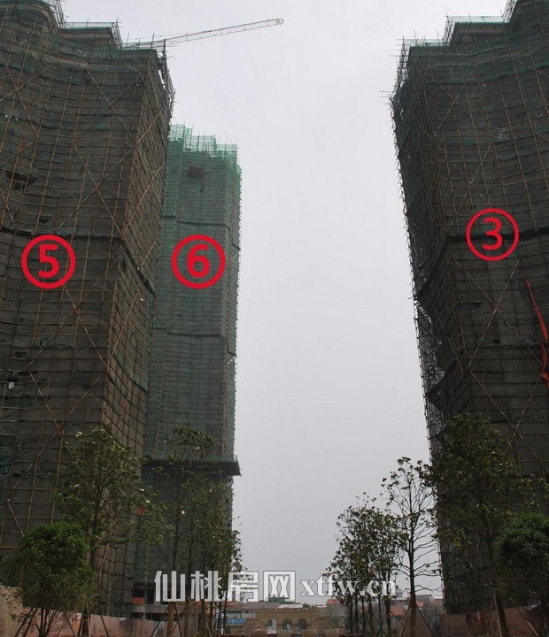 截止6月10日,一期工程除6#楼二次结构在17层外,1#、2#、3#、5#楼主体工程均完工。1#、2#楼外立面中空玻璃、门窗基本安装完毕,1#楼脚手架基本拆除完毕(从上而下),3#、5#、6#楼外立面正在贴砖中,而中央景观示范区,临街商铺已精彩亮相。