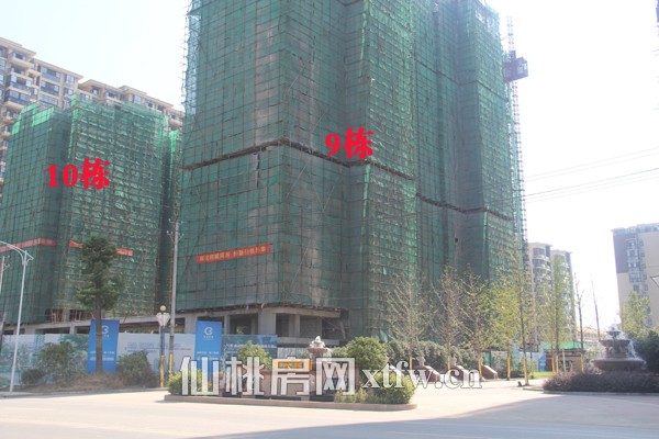 下车后映入眼帘的是7栋、8栋、9栋、10栋,这四栋楼早已封顶,室内隔墙已完工,正在做墙体外立面。