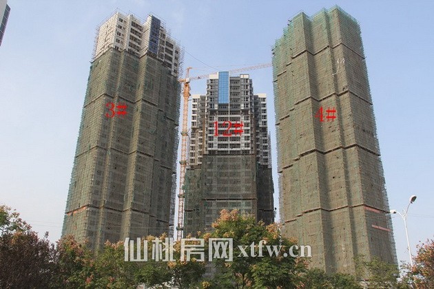 (3#、4#正在内外墙粉刷,12#正在外墙涂料施工)