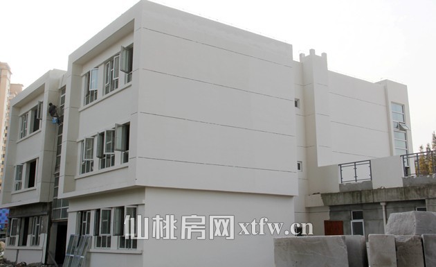 1500平米的国际幼儿园进行外墙粉刷,今年年底将随期住宅一起交付使用。