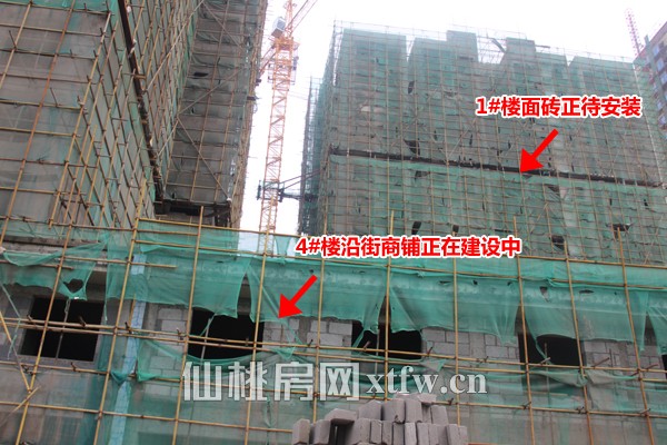 小编随置业顾问来到工地上,据置业顾问介绍,2#、3#、5#外墙的面砖已贴好,室内的粉刷已全部完工,管道设施预计在9月中旬安装完工。1#、4#、6#正在进行内墙粉刷,后续将贴外墙面砖,4#楼沿街商铺也在加紧建设中。