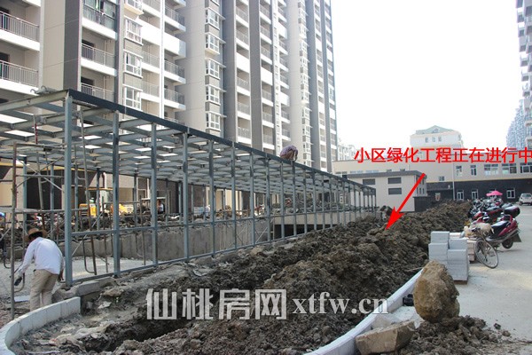 星城国际D区城市丽景的四栋高层已经进入内部设施和小区绿化工程完善阶段,小区的楼内的门窗、栏杆、玻璃、入户门等都已经安装到户,小区的水、电、天然气管道已经铺设完成,小区道路已经正在修整,地下车库入口正在进行装饰作业,小区花坛泥土正待平整。