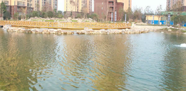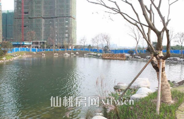 10000㎡中央内湖景观区绿化、水景已完成,水处理(人工湿地,水环流除藻系统)也已经投入使用。