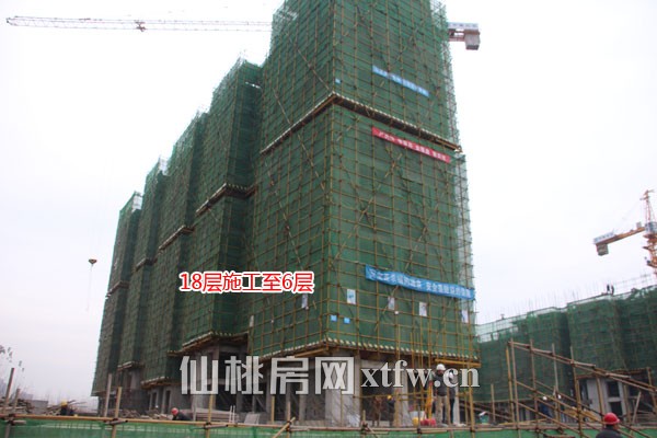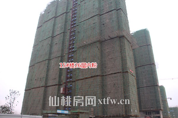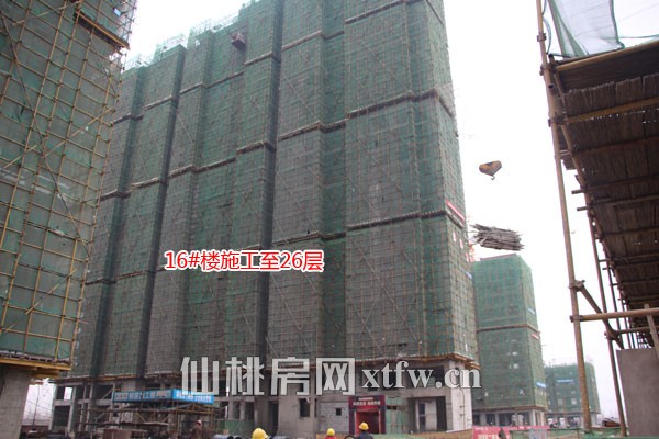 16#楼西单元26层墙柱钢筋绑扎,东单元26层顶板钢筋绑扎。16#楼样板间现已装修完毕,可以供购房者参观了解。