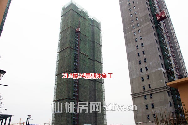 21#楼34层顶板钢筋绑扎,24层砌体施工,二次结构施工至15层。