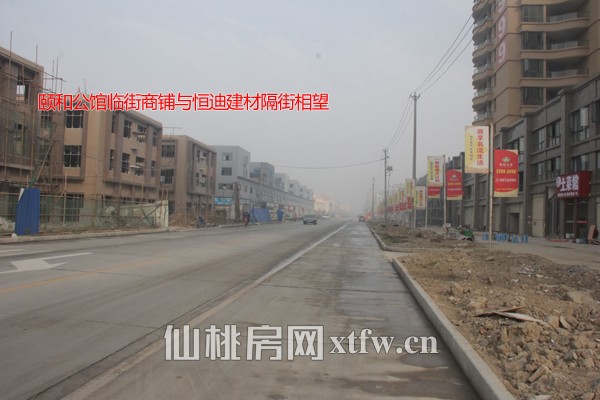 颐和公馆临街商铺与恒迪建材隔街相望