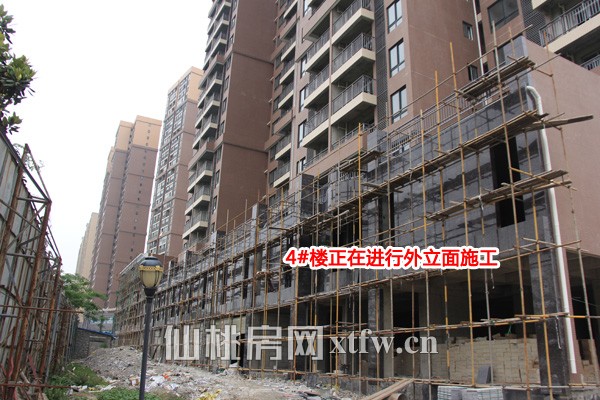 目前项目在建的是二期3#楼、4#楼以及三期的6#楼与7#楼。其中3#楼以及4#楼主体工程已经全部完工,正在进行的是外立面施工,预计今年11月交房。另外,6#楼和7#号楼已经建设至12层。