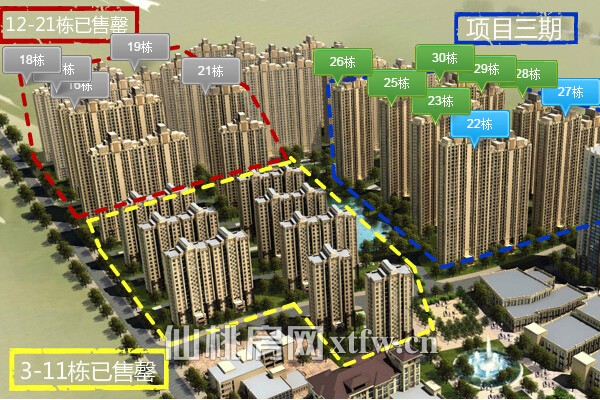 16#、17#、18#全部已经封顶,其中17#、18#正在进行外墙抹灰;22#、27#已经建至14层。