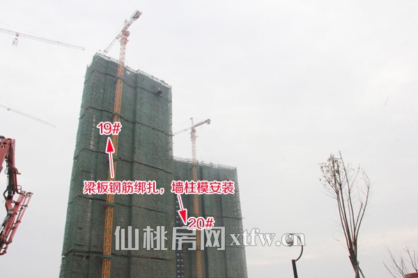 20#楼:东单元30层梁板钢筋绑扎,墙柱模安装,西单元30层梁板钢筋绑扎,墙柱模安装,2-10层砌体施工。