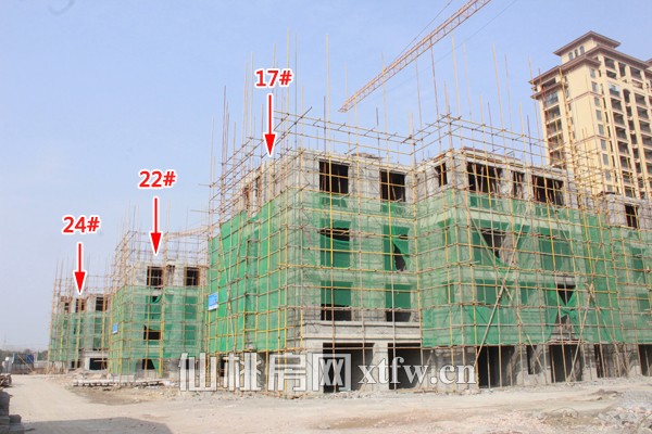 16# 17# 22# 23# 24#栋 共五栋步梯房,已全部建至四层;